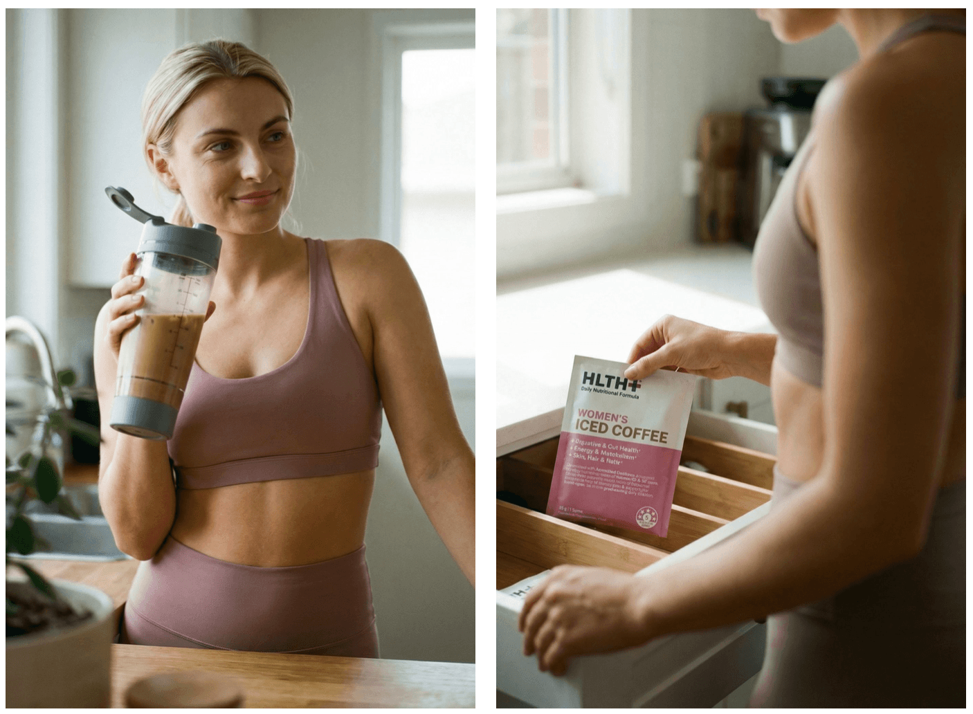 HLTH+ products were integrated naturally into scenes instead of being isolated as traditional hero shots. Placement, reflections, and material behavior were carefully controlled to ensure clarity while preserving an organic, lifestyle-driven feel.